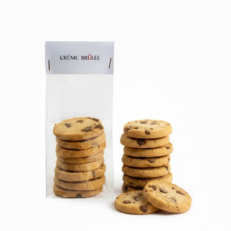 Galletas Sables con trocitos de Gianduja de avellana en un paquete de 10 unidades.